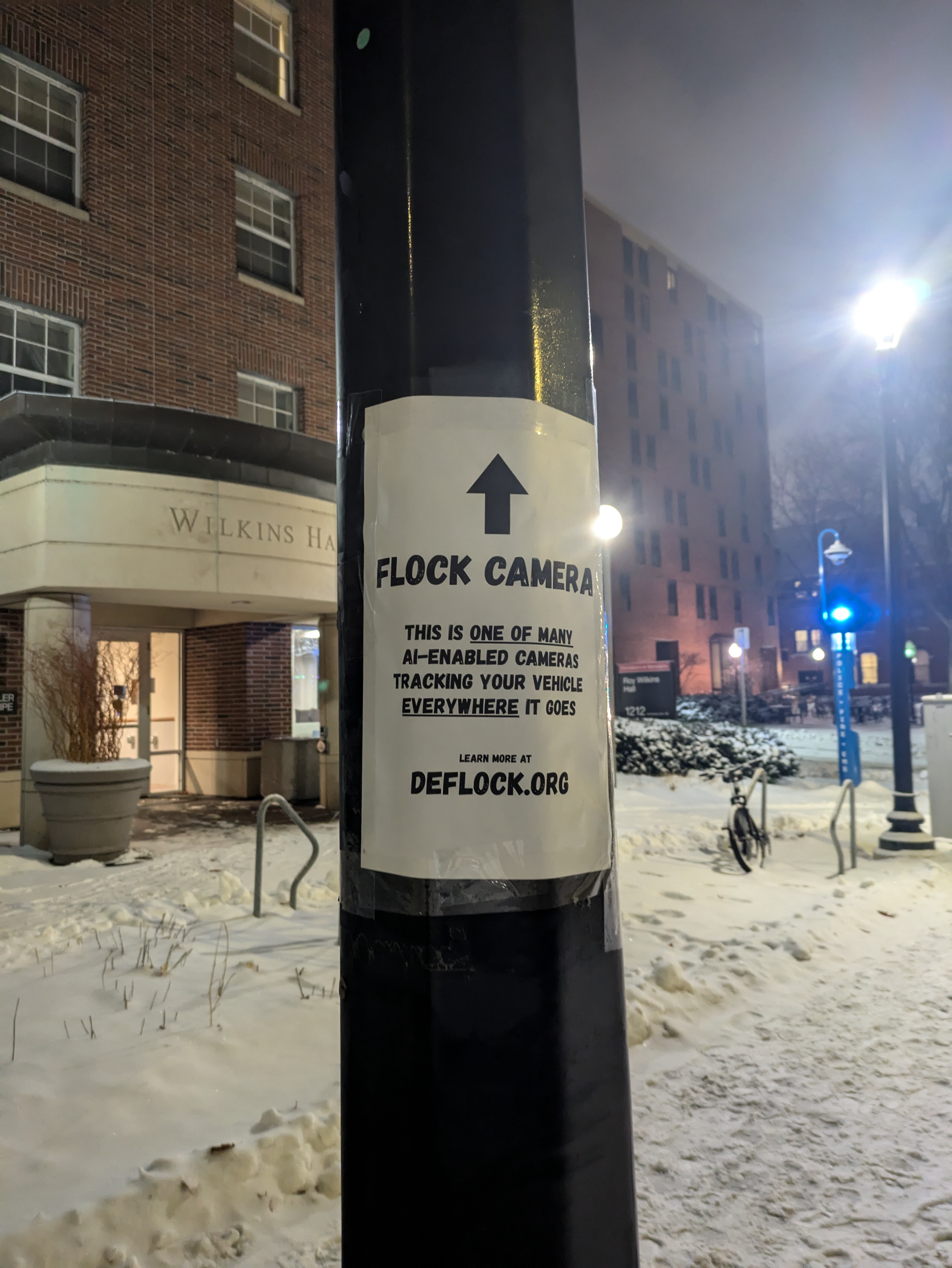 We'll see how long the sign lasts before it's taken down. I'm sure the police here aren't too fond of it. Too bad for them, I live nearby and can just print as many as I want out! If you find any flock cameras in your area I encourage you to take similar action to me too.